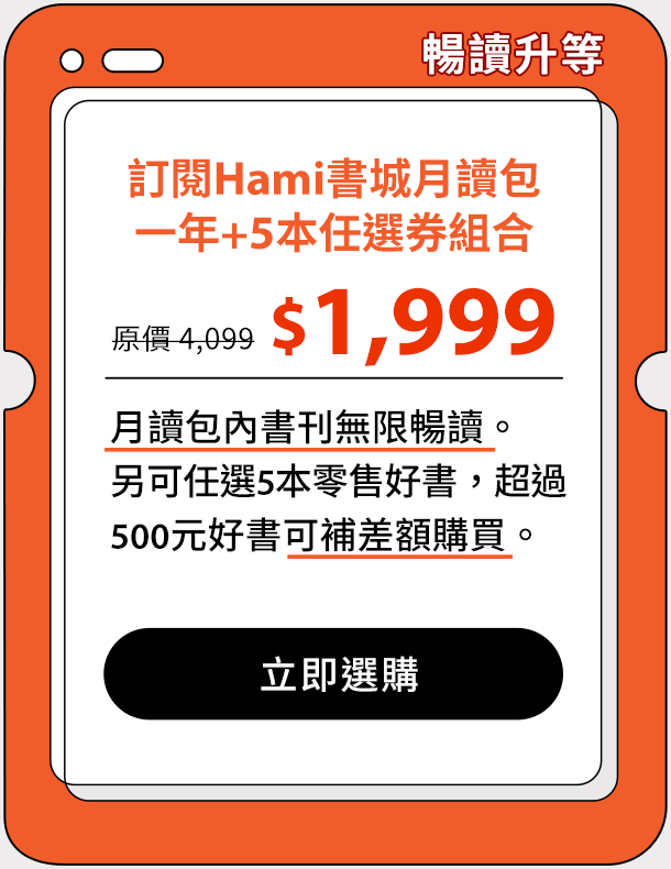 本券適用於 Hami書城「電子書刊」商品(含促銷中書刊),少部分未參加本活動之書刊無法兌換。不可折抵月讀包、藏愛包。
