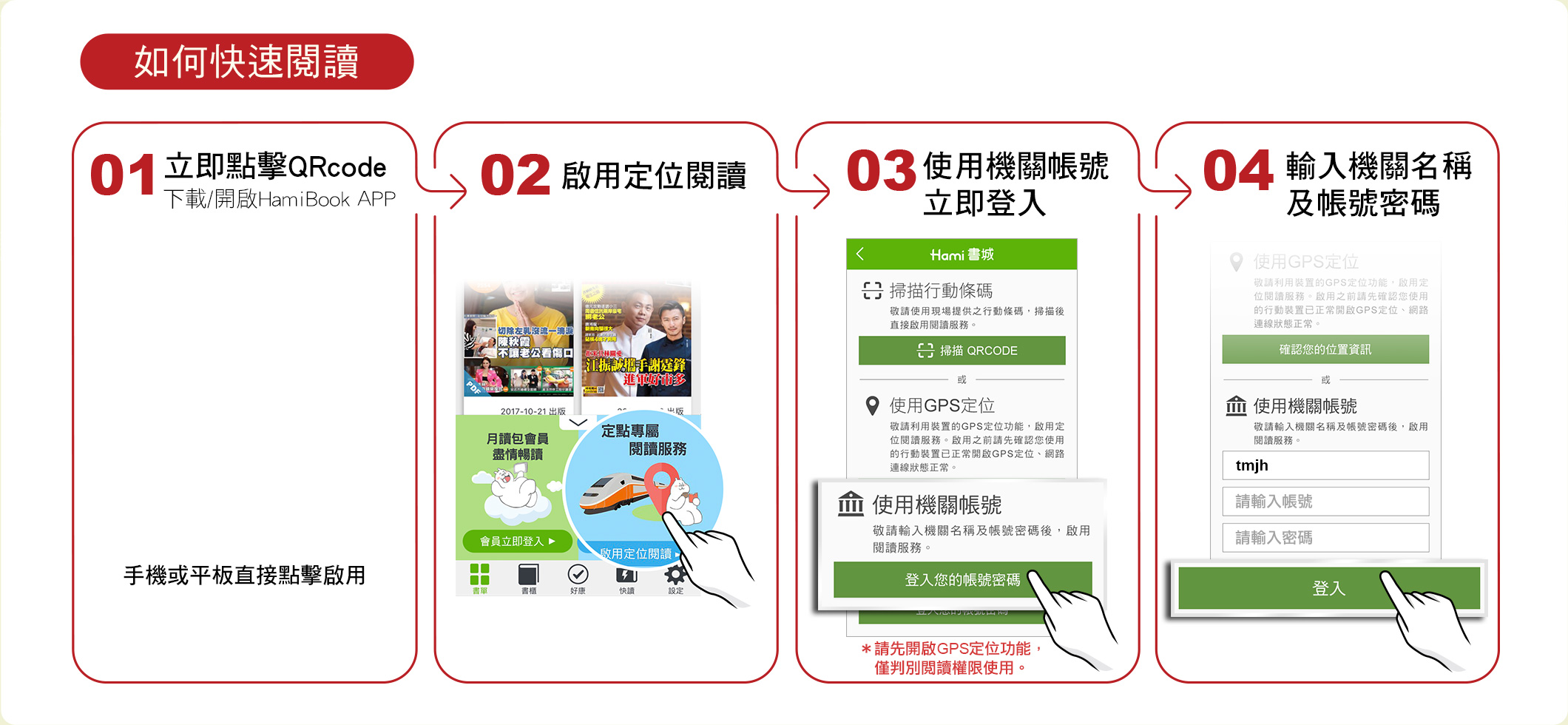 若使用手機/平板等行動載具閱讀,請先開啟定位服務,將您要看的報章雜誌、書籍下載後,即可關閉定位離線閱讀。