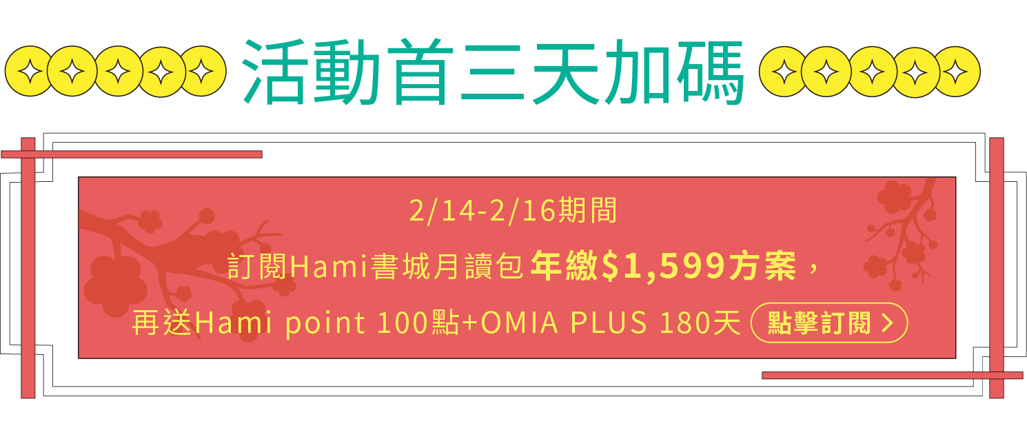 4. Hami 書城站內銷售之電子書與月讀包皆為數位內容產品,需使用 HamiBook App 進行閱讀,且不適用七日鑑賞期。請確認您已瞭解本服務方式再進行交易付款。詳細內容請參照官網說明。