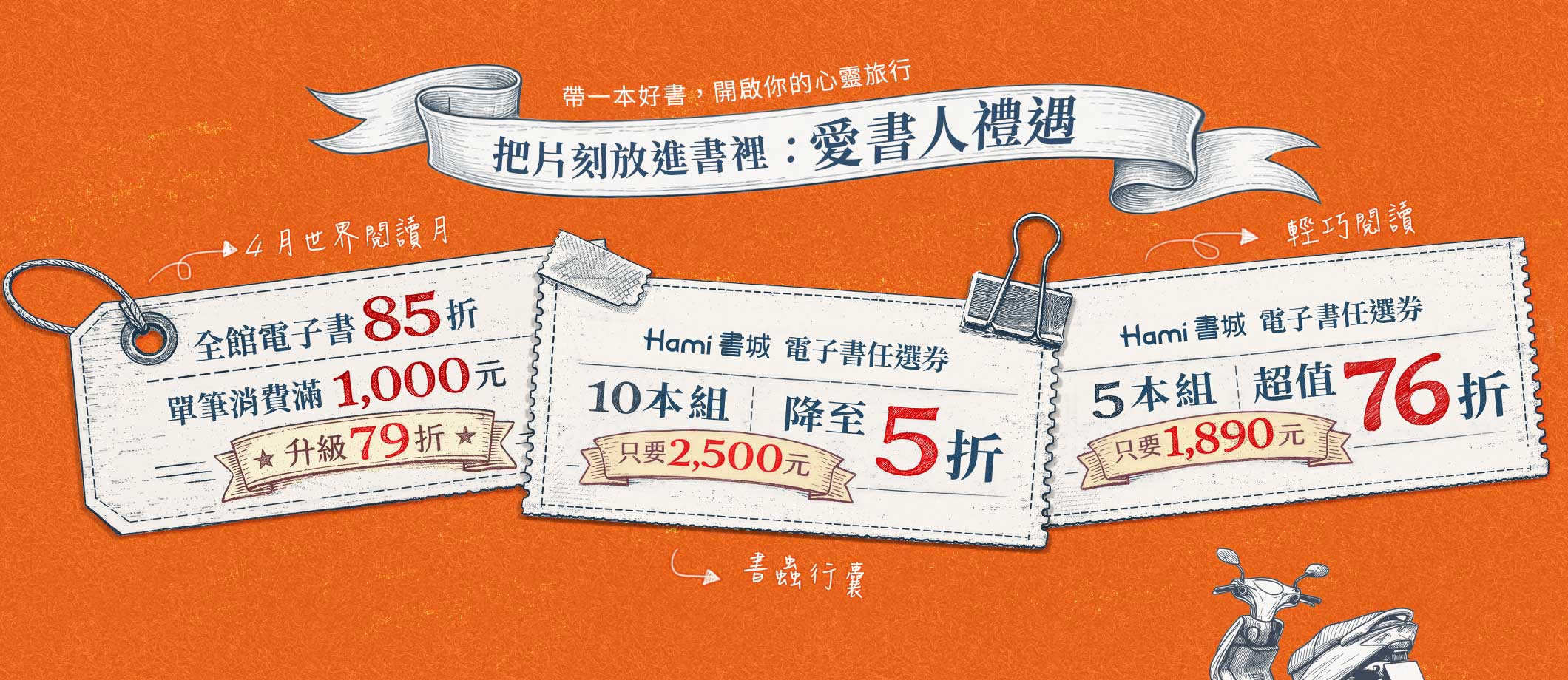 4/1至4/30期間,於Hami書城官網消費任一Hami書城月讀包/電子書,即獲抽獎資格。若以月讀包身份參與,需在得獎名單公布時,須具備付費月讀包會員身份,方符合得獎資格。